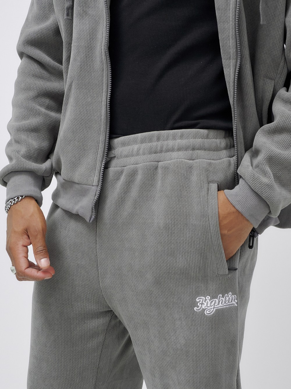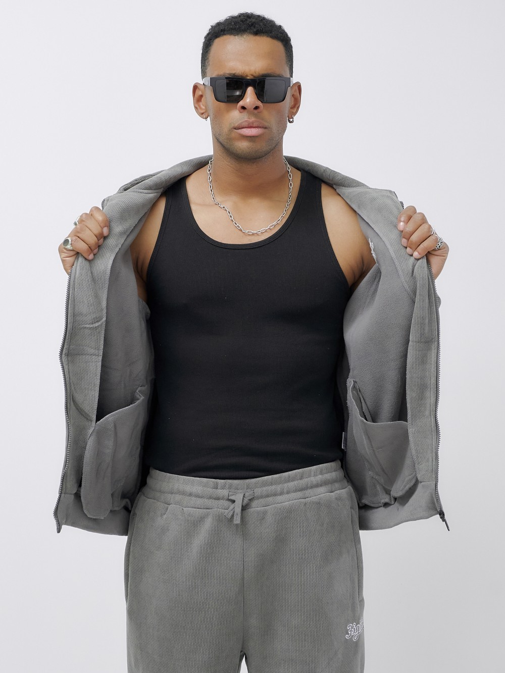 Брюки мужские демисезонные на флисе УЦЕНКА темно-серого цвета 0932TC