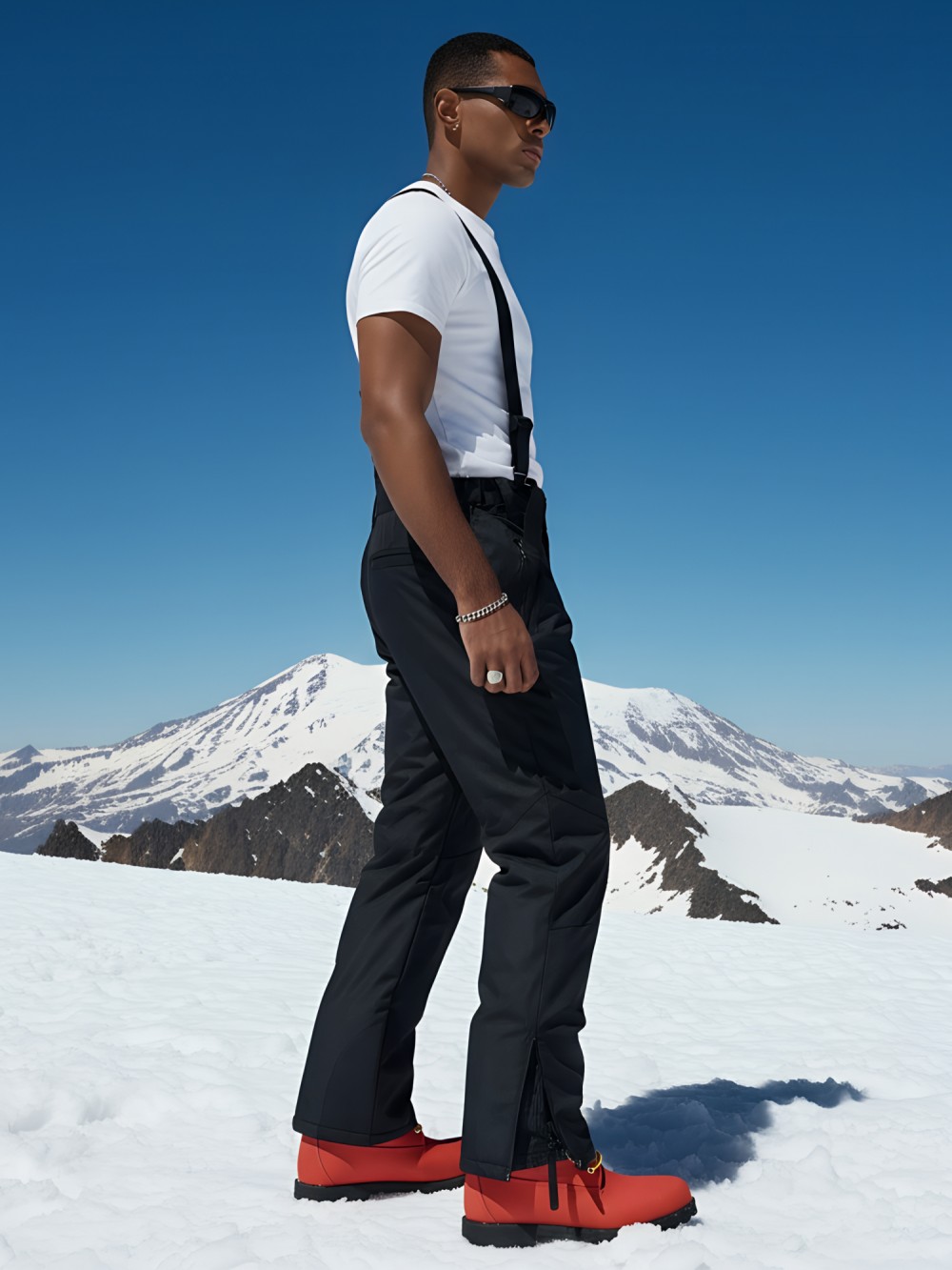 Эти брюки имеют свободный покрой, что обеспечивает комфорт и свободу движений на склоне. Внутренние швы тщательно проклеены и прошиты, а прорезные карманы с молниями надежно сохранят ваши вещи. Декоративные элементы, такие как кнопки и молнии, добавляют стильный акцент, а однотонный черный цвет делает их универсальными для любого наряда — от спортивного до вечернего.
