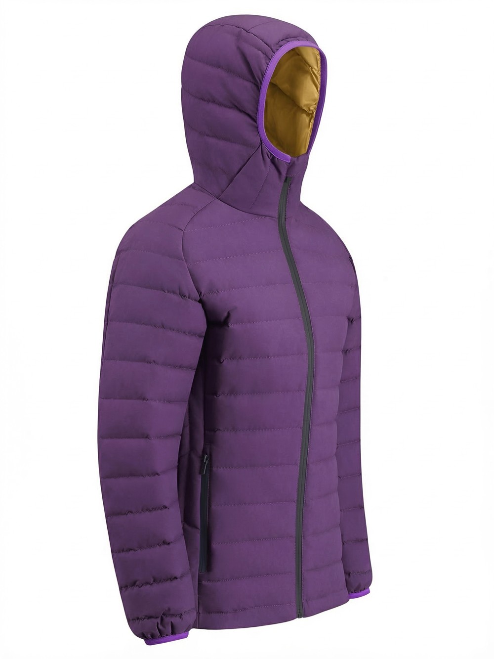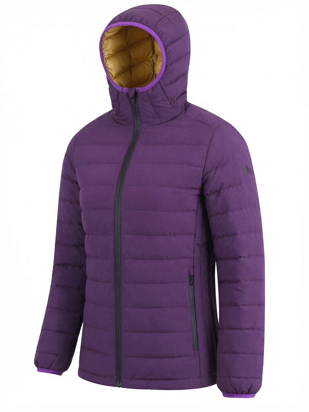 Куртка женская стёганая с капюшоном с графеновой подкладкой темно-фиолетового цвета 9624_1TF