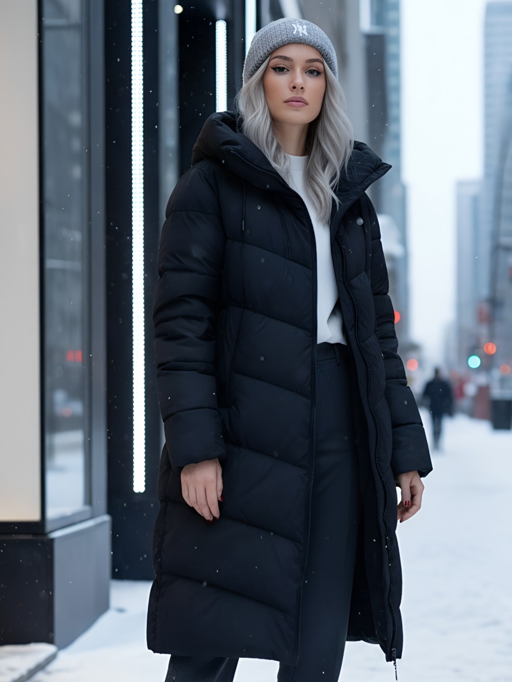 Капюшон не съемный и оснащен фиксатором, а внутренние карманы добавляют удобства. Двойная молния служит надежной застежкой, а проклеенные и прошитые внутренние швы усиливают защиту от ветра. Модель отличается элегантным офисным и повседневным стилем, а гладкая стеганая фактура материала придает ей современный вид.