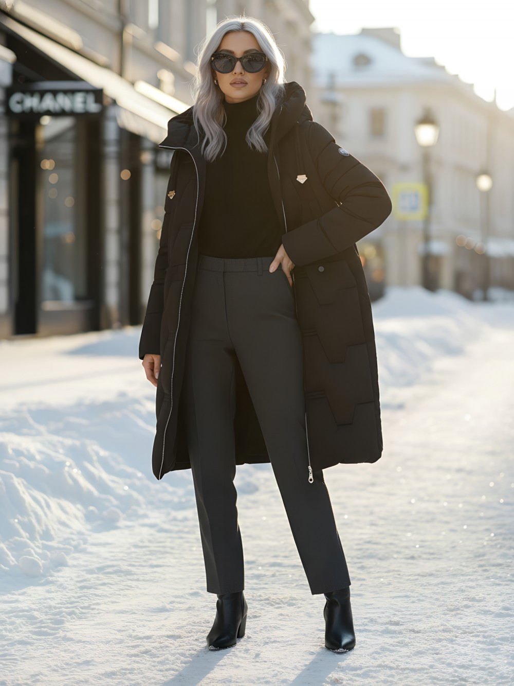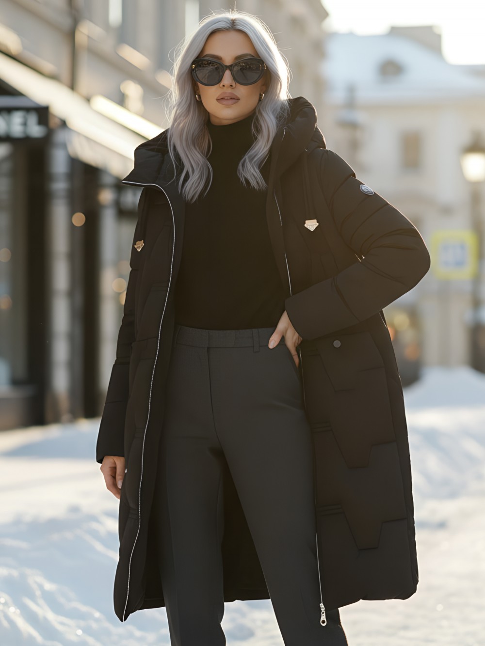 Надёжно защищает от холода, ветра и осадков. Идеален для зимней погоды, не требует головного убора.