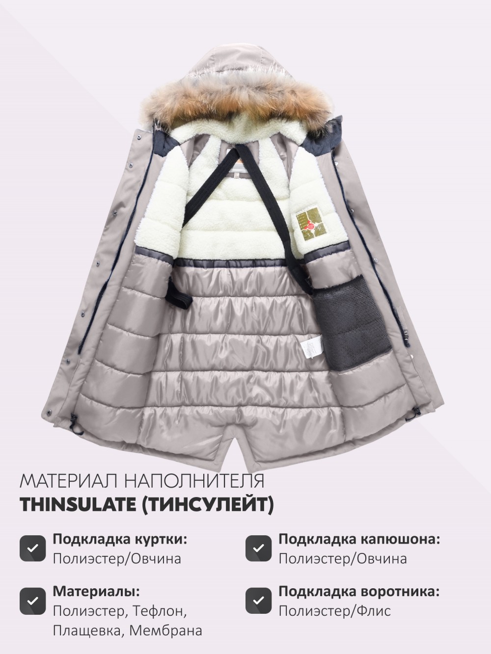 - Материал подкладки куртки