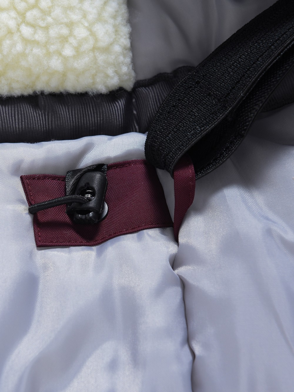 Внутренняя подкладка из овчины, полиэстера и флиса создаёт ощущение уюта и мягкого тепла. Несъёмный капюшон плотно прилегает, защищая голову от ветра и снега, а воротник-стойка надёжно закрывает шею. Регулируемые фиксаторы на рукавах, по низу и на капюшоне позволяют подстраивать посадку и сохранять тепло внутри.