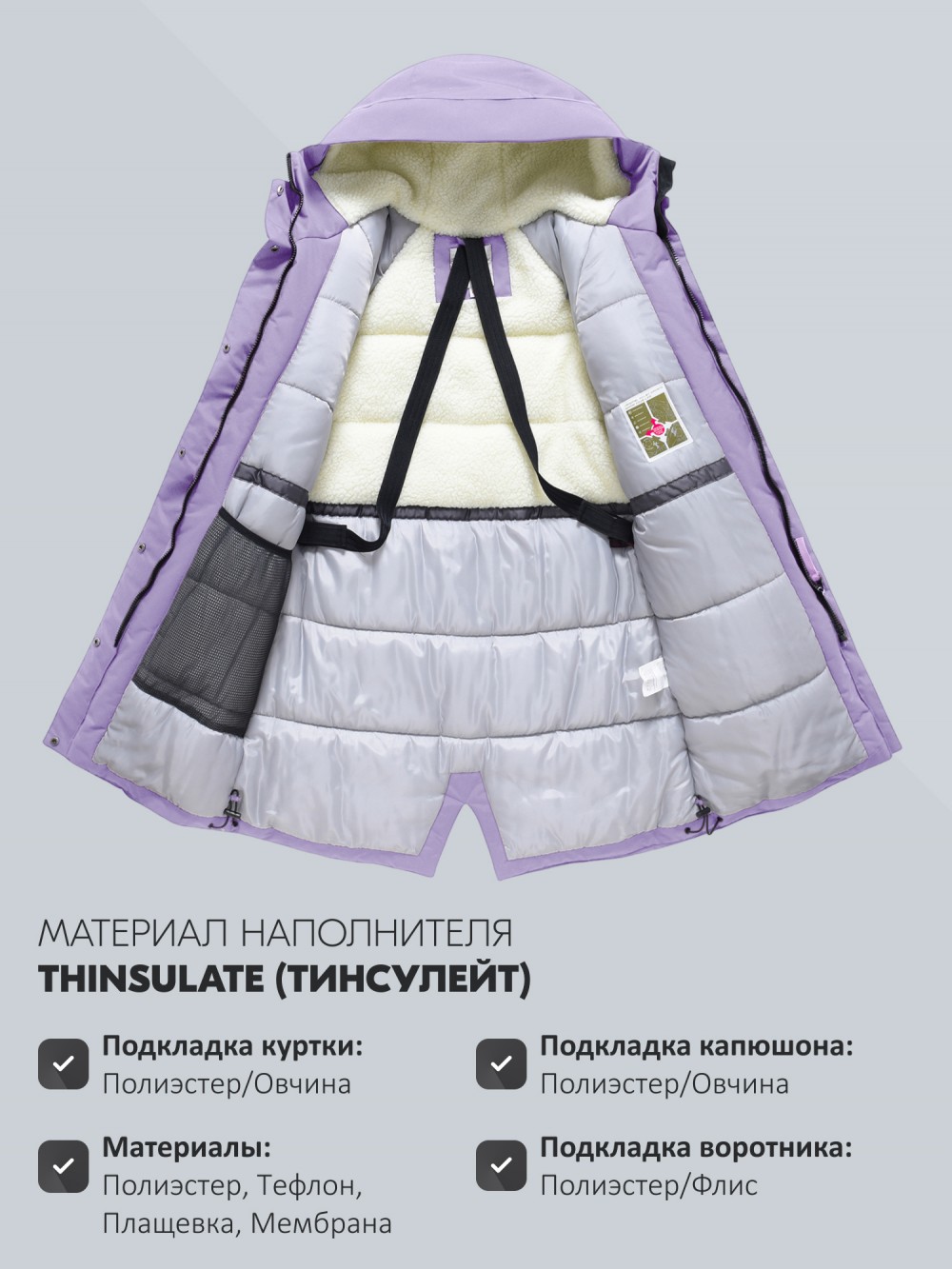 Парка зимняя женская с капюшоном сиреневого цвета 9538-1Sn